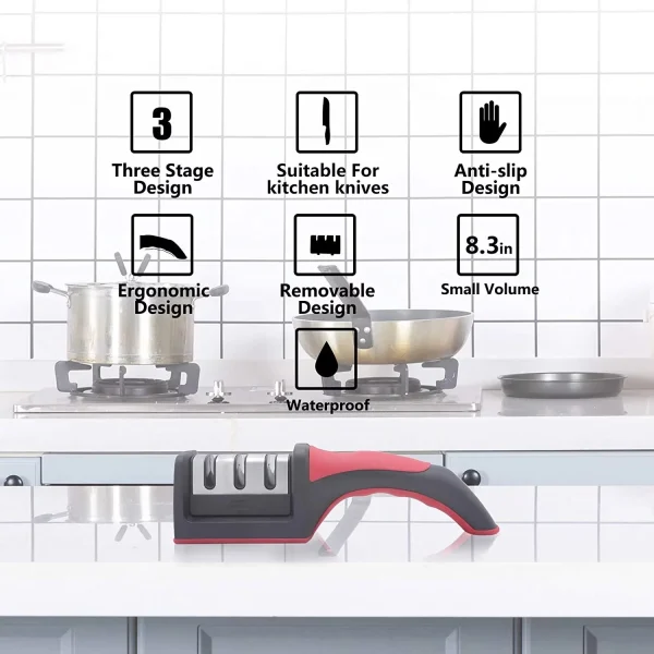 এই শক্তপোক্ত ৪-ইন-১ ছুরি শার্পনার দিয়ে ঘরের যেকোনো ছুরি, কাঁচি বা কাটার সহজেই ধার দেওয়া যায়। এটি ব্যবহার করা একদম সহজ, নিরাপদ এবং কার্যকর। রান্নাঘরের প্রতিদিনের কাজে এটি হতে পারে আপনার সেরা সহকারী।